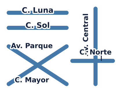 (Depende del diagrama, ej. Calle Luna y Calle Sol)