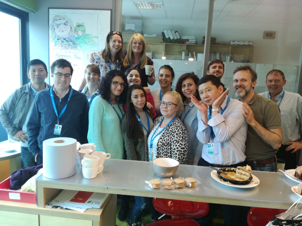 Foto de natalia Figueira cos compañeiros da súa empresa en Irlanda (Galway). Natalia fixo a FCT do ciclo de Administración e Finanzas nesta empresa dende marzo a xuño de 2017 cnha beca Erasmus+.