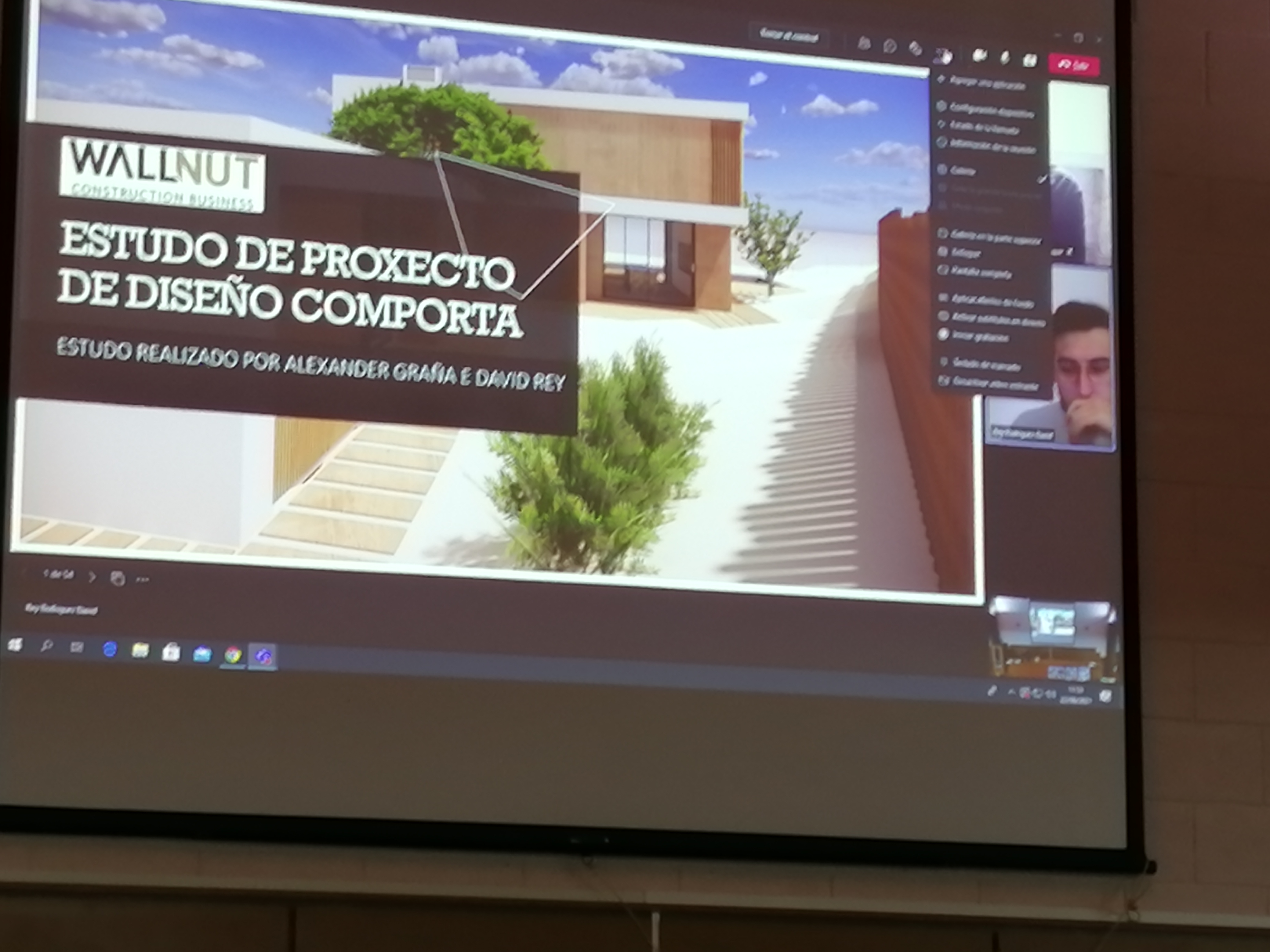 Fotos de Alex e David expoñendo o traballo de FCT por videoconferencia desde Lisboa: