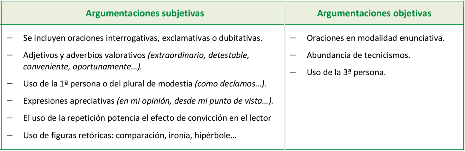Los textos argumentativos son subjetivos porque su intención es persuadirnos de la opinión de su autor. Pero, por otro lado, para que esa opinión resulte convincente, debe estar bien fundamentada con argumentos imparciales.