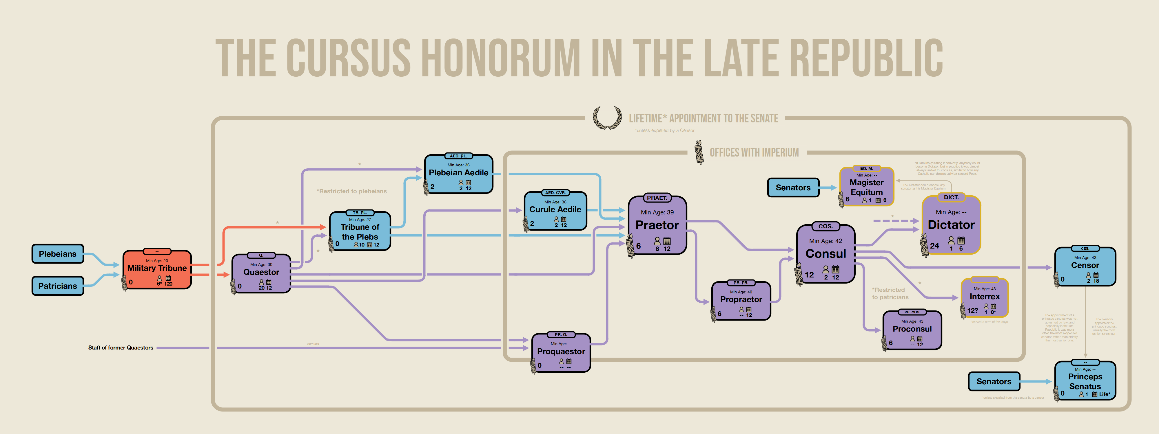 Magnífico esquema sobre o cursus honorum tardorrepublicano (Reddit, usuario ATriplet123 en /usefulcharts)