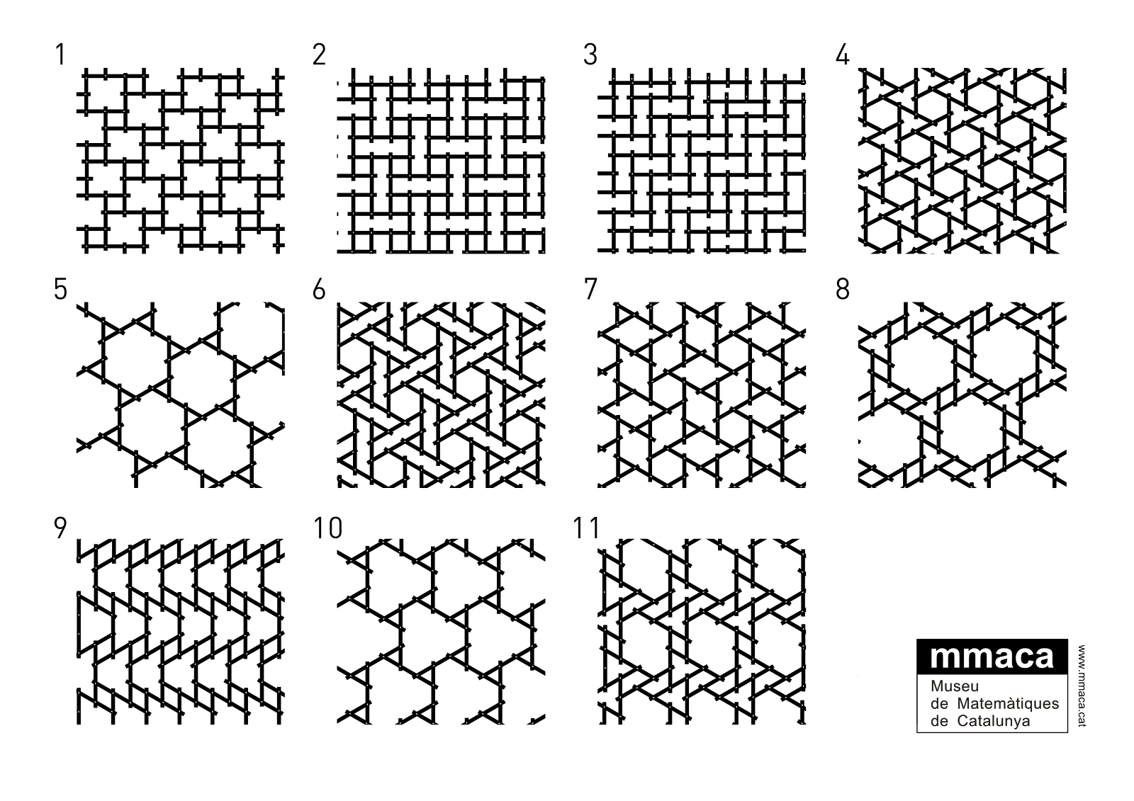 Aquí tenéis las tramas o mallas planas con las que hemos construido las Cúpulas autoportantes de Leonardo. Se llaman así porque la estructura se mantiene en pie gracias a la gravedad y a la resistencia que cada pieza ejerce sobre las demás. De hecho, llega un momento en que la estructura llega al límite de piezas de modo que no es posible encajar una más sin que se rompa.