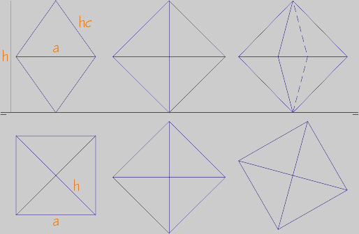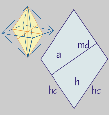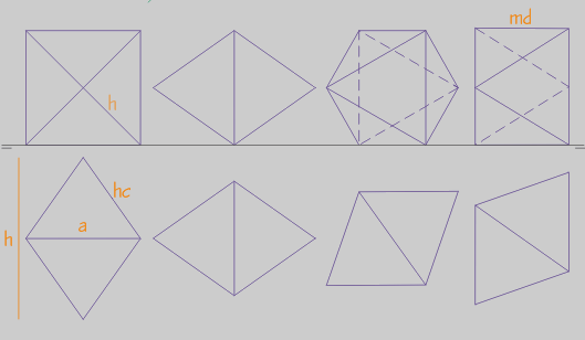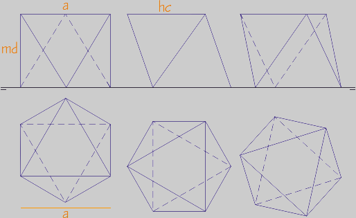 a = arista. dc = diagonal de cara. d = diagonal del poliedro.