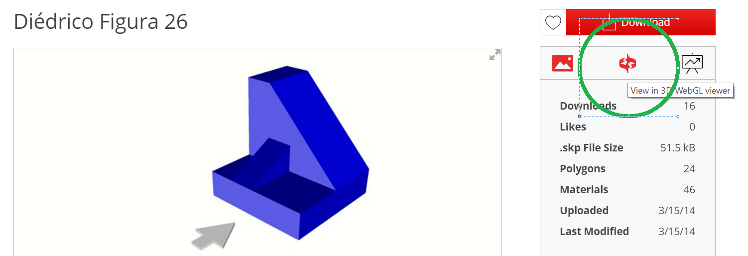 Localiza na web 3D Warehouse a canle de Pedro Landín (pelandintecno) e a súa colección "Diédrico - Figuras Obtención Vistas ortogonales" e escolle a túa para debuxar no Sketch Up do ordenador.
