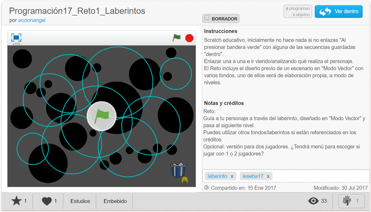 Neste 1º RETO tes que Deseñar un Xogo de Labirinto na túa conta persoal de Scratch.