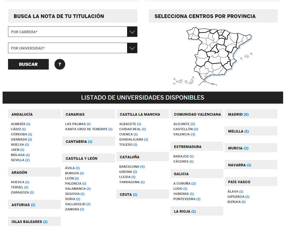 Para calcular a Nota de Acceso (fase voluntaria) e a Nota de Admisión (probable, xa que as ponderacións poden variar dun ano para outro de dunha comunidade autónoma a outra) podedes empregar o este simulador.