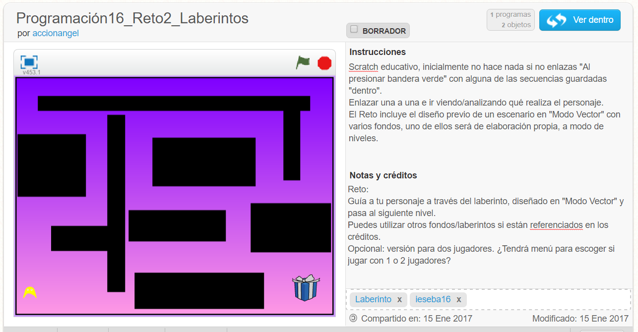 Neste 1º RETO tes que Deseñar un Xogo de Labirinto na túa conta persoal de Scratch.