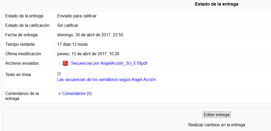 - Una vez enviado verás el enunciado de esta Tarea y debajo lo que tu enviaste, de hecho si clicas en él se abrirá el pdf.