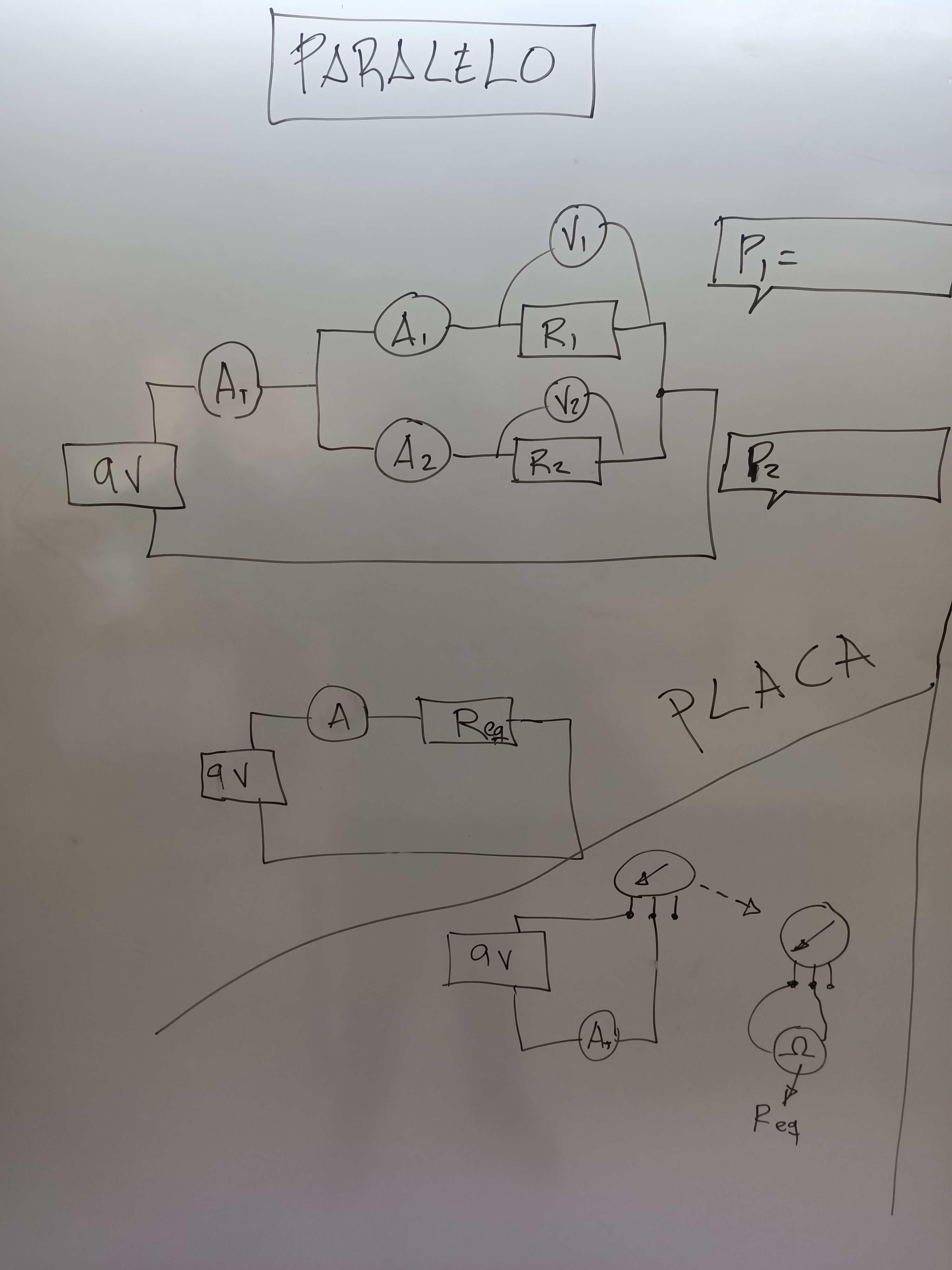 - Las tensiones (caídas de tensión) en las ramas son la misma e igual a la de la pila. VT = V1 = V2 = V3 = ... Colocaremos 2 voltímetros.