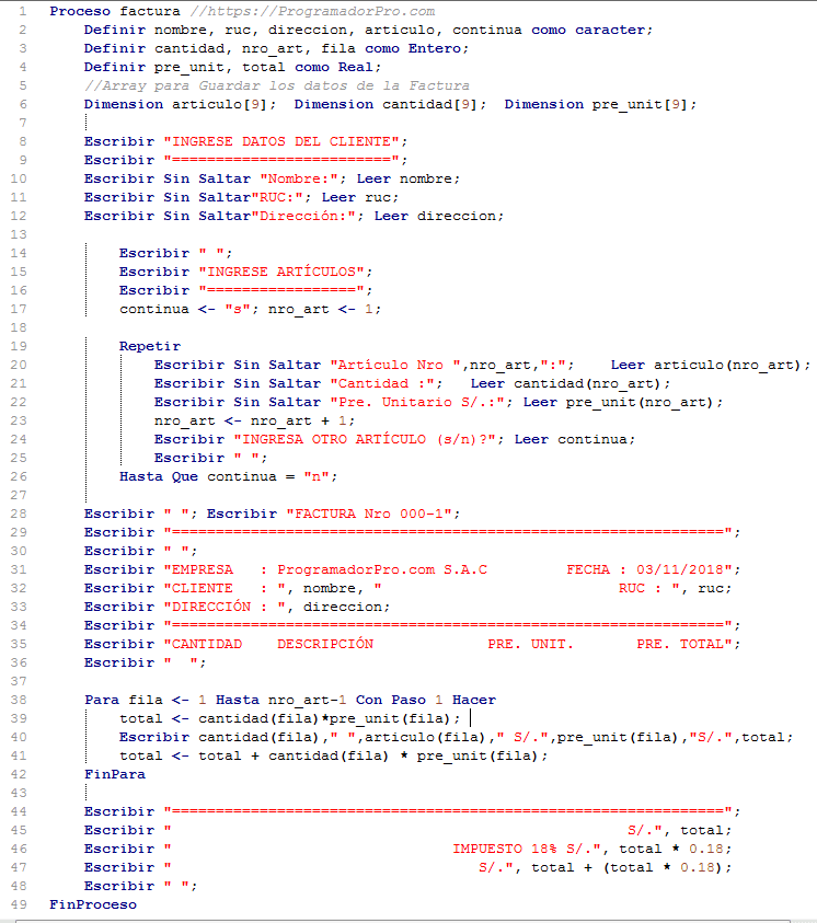 Esta actividad consiste en la realización mediante PSeInt de una variante adaptada a España de la factura electrónica realizada por CÓDIGOS en su blog full-algoritmos.blogspot.com para Perú.
