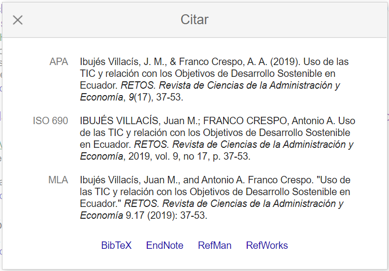 Explorar el manejo de "Citar" (abajo izquierda de cada búsqueda) para incorporar la referencia (ver formatos de cita, facilita 3: APA, ISO y MLA).