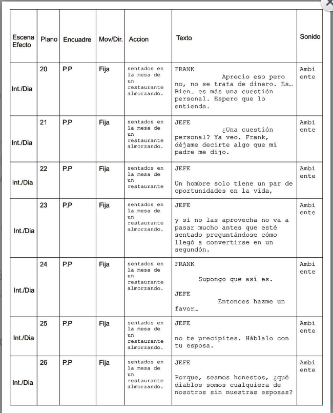 El primero se corresponde con una fase previa y, normalmente, sin la intervención del Director, será éste el que, al leer el guión, se imagine cómo se desarrollará el audiovisual, el ambiente, los planos, los movimientos de cámara, etc. y ahí es donde podría pedir un Storyboard si es gráfico o un Guión Técnico si es escrito. Para conocer los planos y los movimientos de cámara necesitarás ver los vídeos del Libro "Del Cortometraje al Guión Técnico" o los recursos de la Guía Didáctica 2, Preproducción, de Cinedfest.
