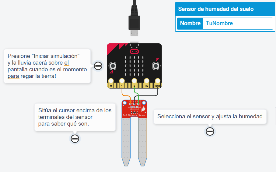 - Diseña, programa y monta un sistema de control de humedad con la Micro:bit. Por ejemplo: si el substrato está seco, debe indicar una carita triste.