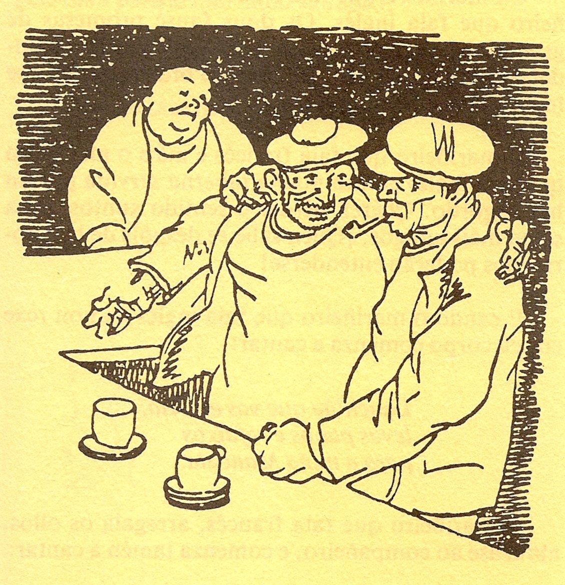 Un mariñeiro que fala francés tropeza cun mariñeiro que fala inglés. Os dous fanse promesas de gran amistade, cada un no seu falar. E sen entenderse camiñan xuntos, collidos do brazo, servíndose mutuamente de puntales.