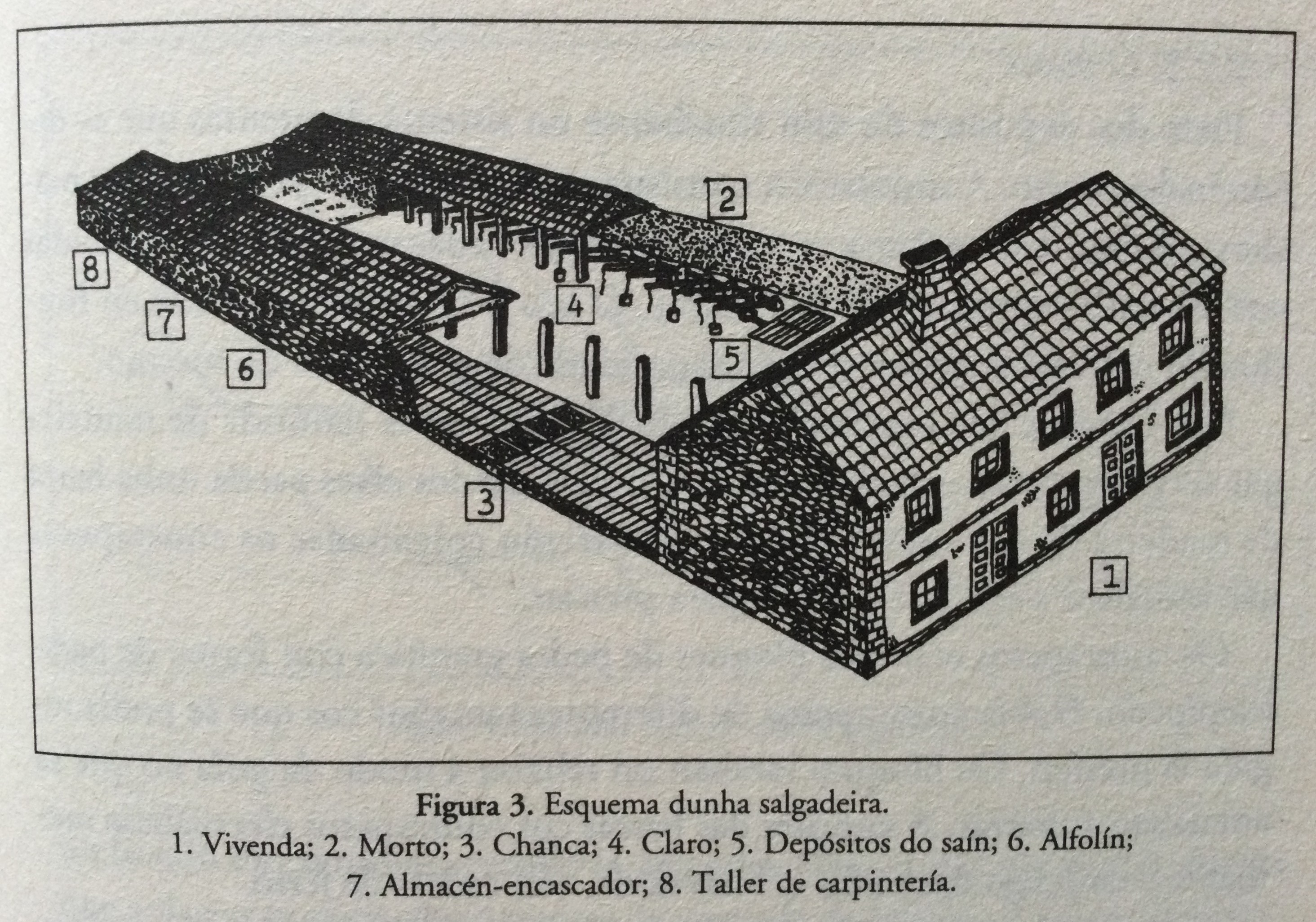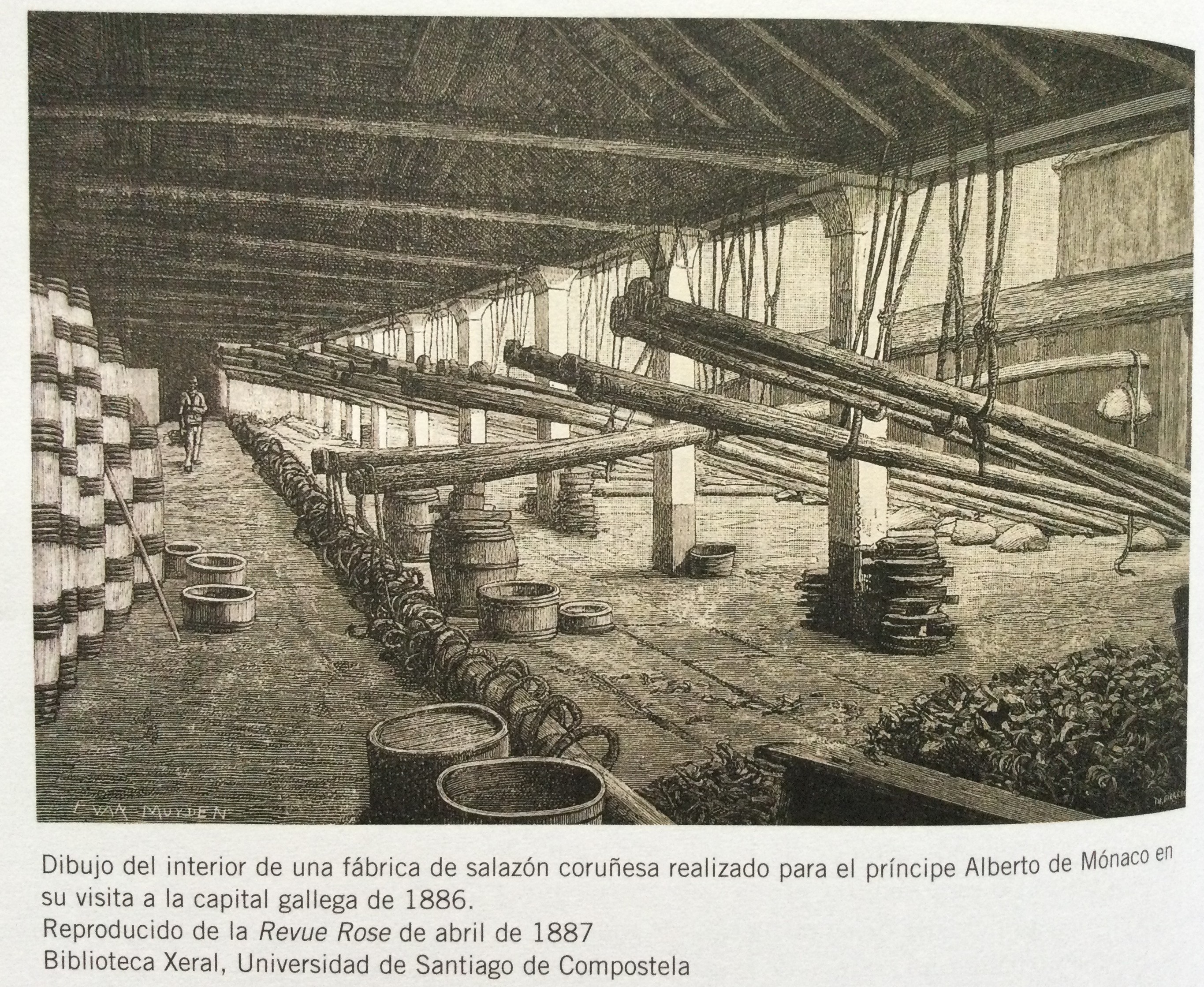 A chegada de emprendedores da costa catalana cunha nova arte de pesca (a xávega), mellores sistemas de prensado do peixe e de organización do traballo favoreceu a expansión dos almacéns de salga nas rías galegas dende mediados do século XVIII.