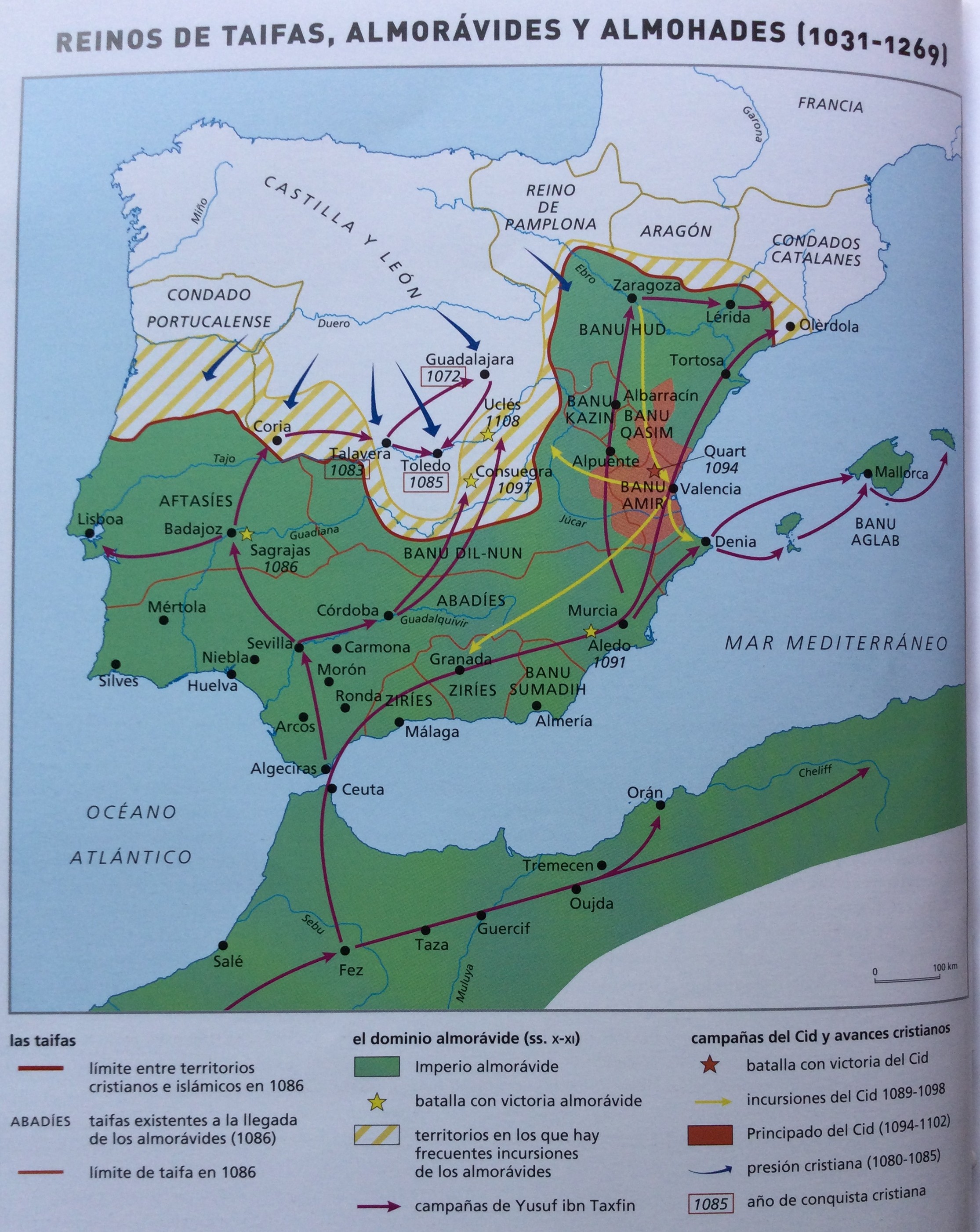 O enfrontamento entre cristiáns e musulmáns agravouse durante os secs. XI e XII coas Cruzadas, que fracasaron no proxecto de controlar Jerusalem, e coa expansión cristiá sobre os territorios andalusíes (a denominada Reconquista do vello reino visigodo). Iso provocou a reacción musulmana en todo o Mediterráneao: fatimies en Exito e, sucesivamente, almoravides e almohades que pasaron a Al Aldalus para reunificar as taifas hispanomusulmás e frear o avance cristián, evidente dende 1085 coa toma de Toledo por Afonso VI de León e Castela.