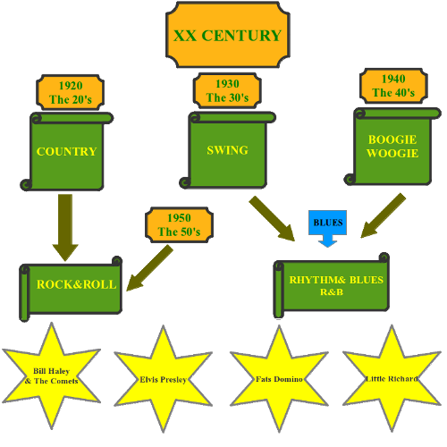 the 50's, rock & roll music became popular in the USA and other