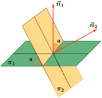 \[\displaystyle \cos \widehat{(\pi, \pi')} = |\cos \widehat{\vec{n_\pi}, \vec{n_{\pi'}}}| = \frac{|\vec{n_\pi} \cdot \vec{n_{\pi'}}|}{|\vec{n_\pi}| |\vec{n_{\pi'}}|}\]