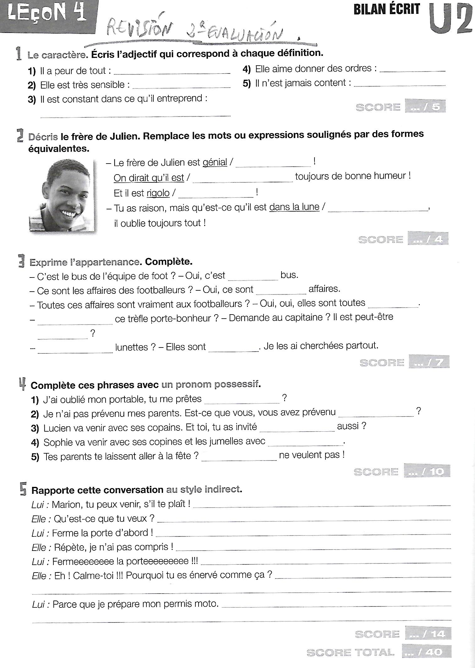 Revisión todos ( sobre todos suspensos 2ª evaluación) : bilan écrit página 28 cuaderno ejercicios.