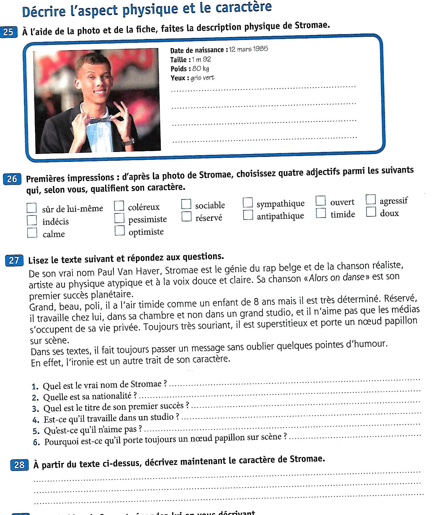 - Lecture d’un texte très facile ( niveau A1 ) avec un questionnaire :