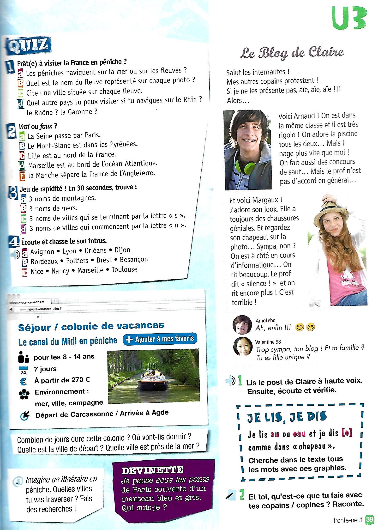 Trabajar también el texto "Le blog de Claire", para leer un poco y fijarse en las diferentes grafías del sonido [o], así no abandonamos la fonética.