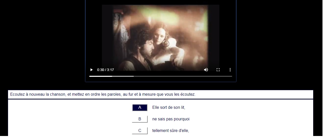 c)- Ordenar la letra de la chanson “La Seine”, como en la imagen que inserto, en la web de Carmen Vera >> http://platea.pntic.mec.es/cvera/hotpot/vanessa_paradis_la_seineb.htm