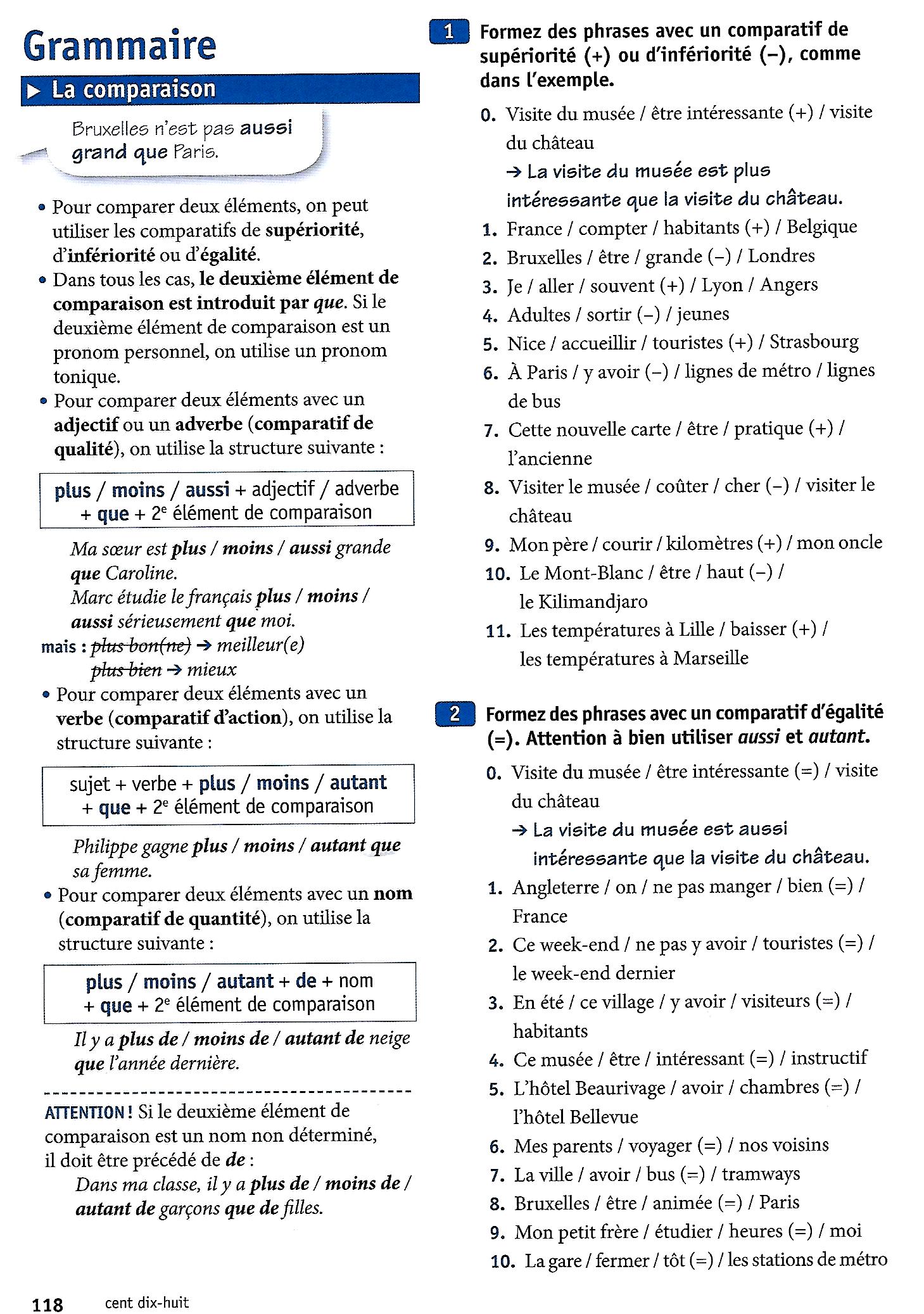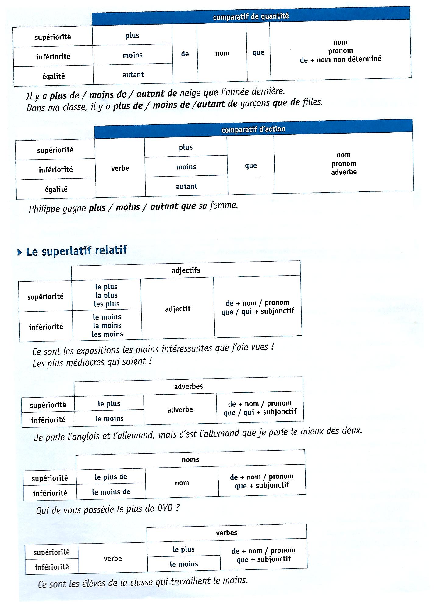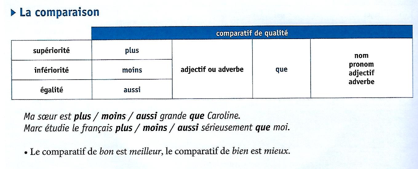 Formation de la phrase comparative en français: