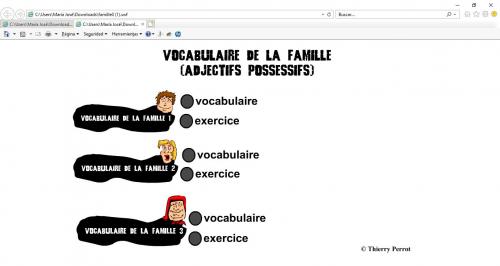 3- Hacer ficha 1 de “la famille et les possessifs” ( de las personas singular) y repasar el léxico en la web. Podéis escuchar el vocabulario de la familia en esta página web de léxico básico del francés: