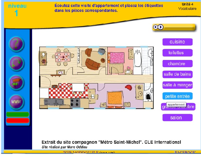 2. Le vocabulaire de la maison (documento audio también ): http://www.estudiodefrances.com/exercices/appartement.html