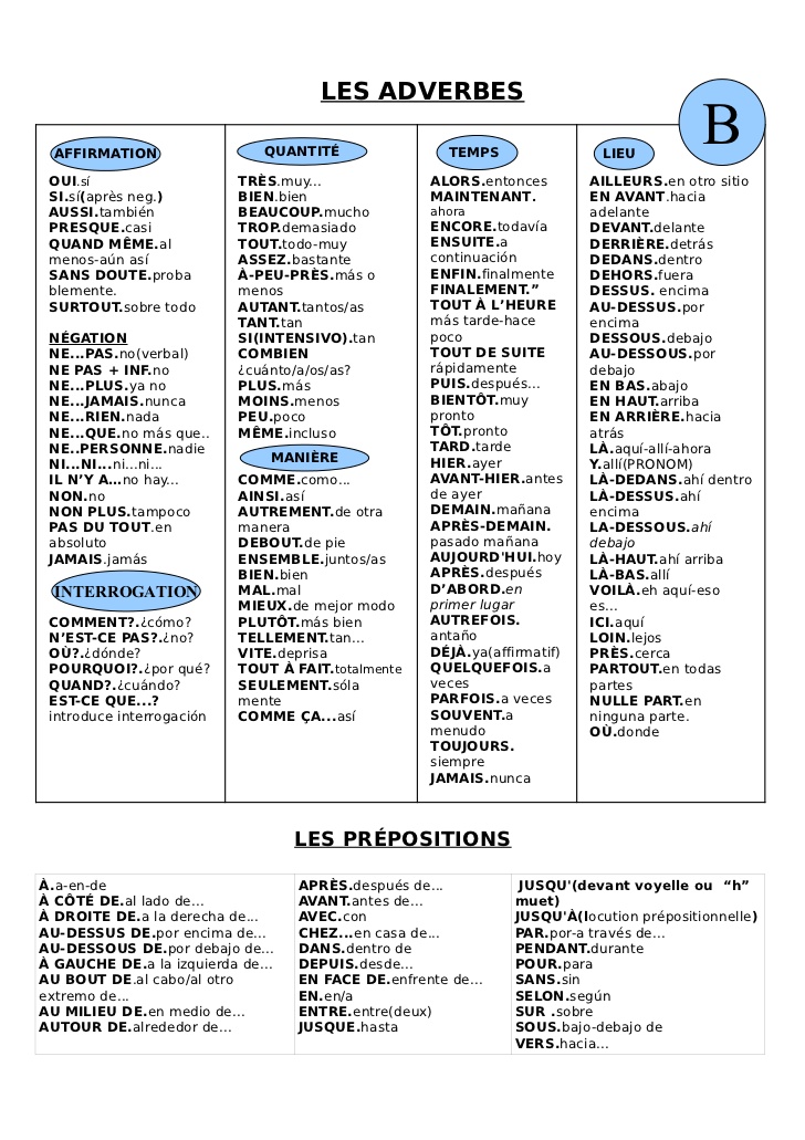 Et je vous fais voir aussi une petite fiche avec les adverbes et les prépositions et leur traduction, comme ça ils sont tous systématysés et bien classés.