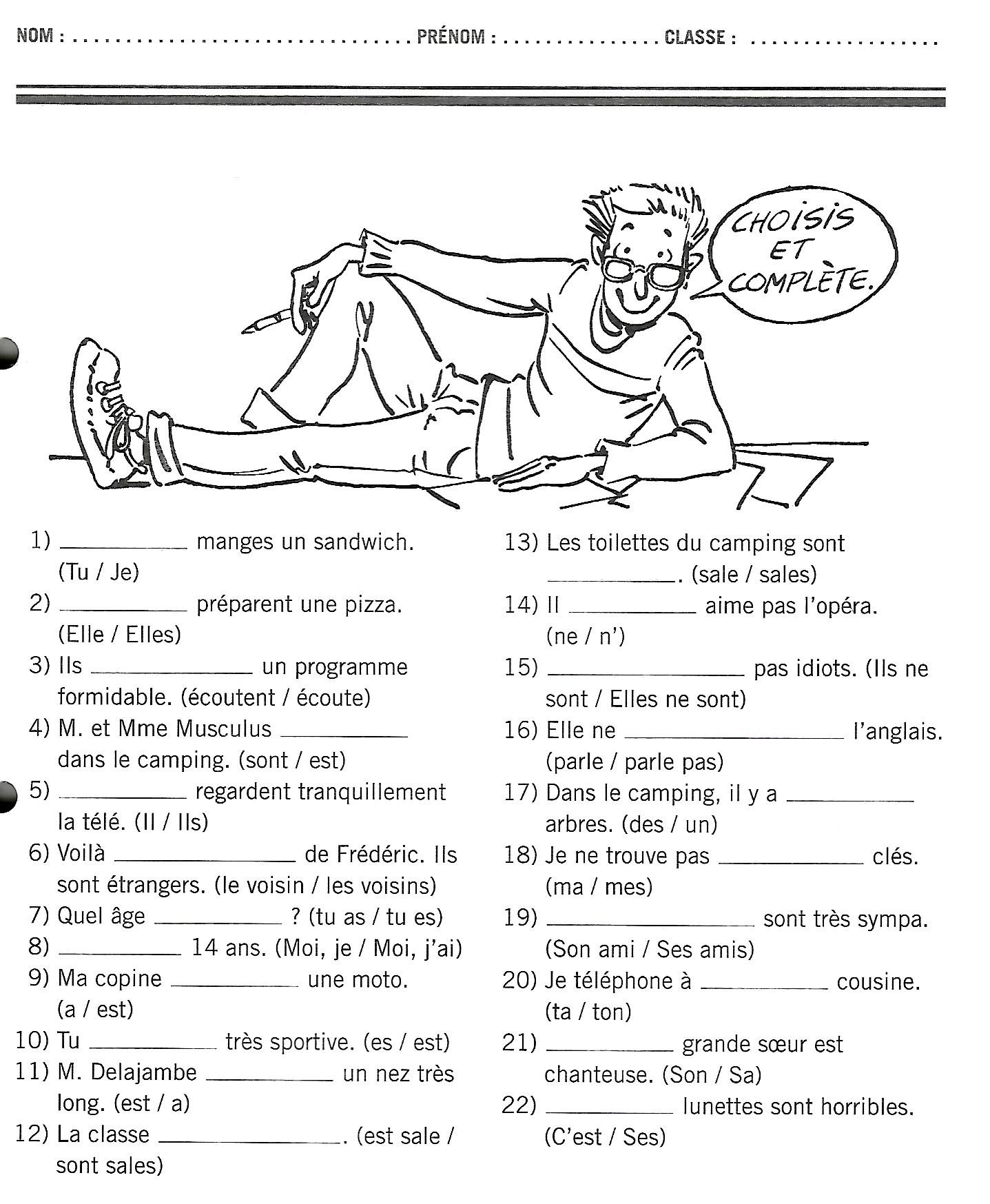 Ficha 2 : test grammaire compléter 22 phrases. Ir a la página anterior para descargar ficha debajo de esta página