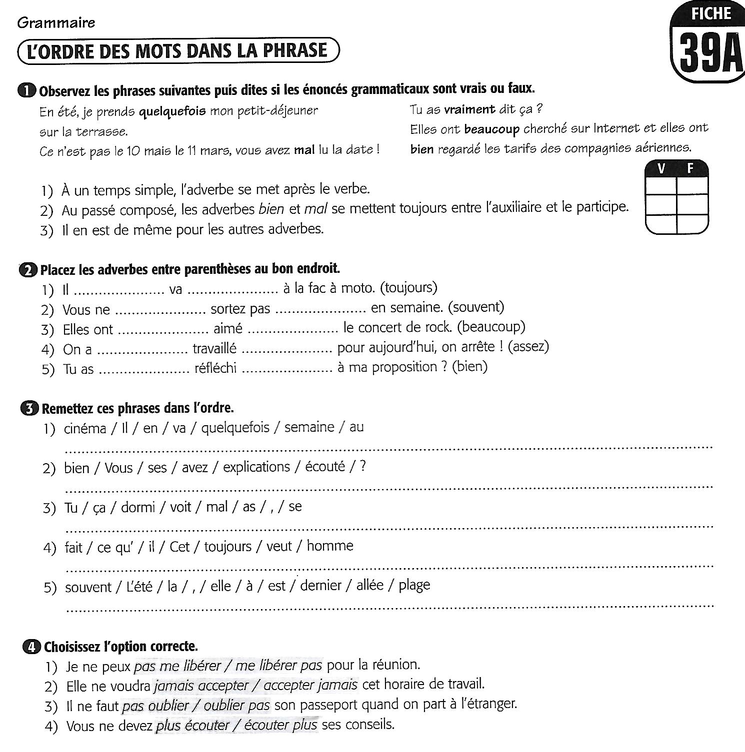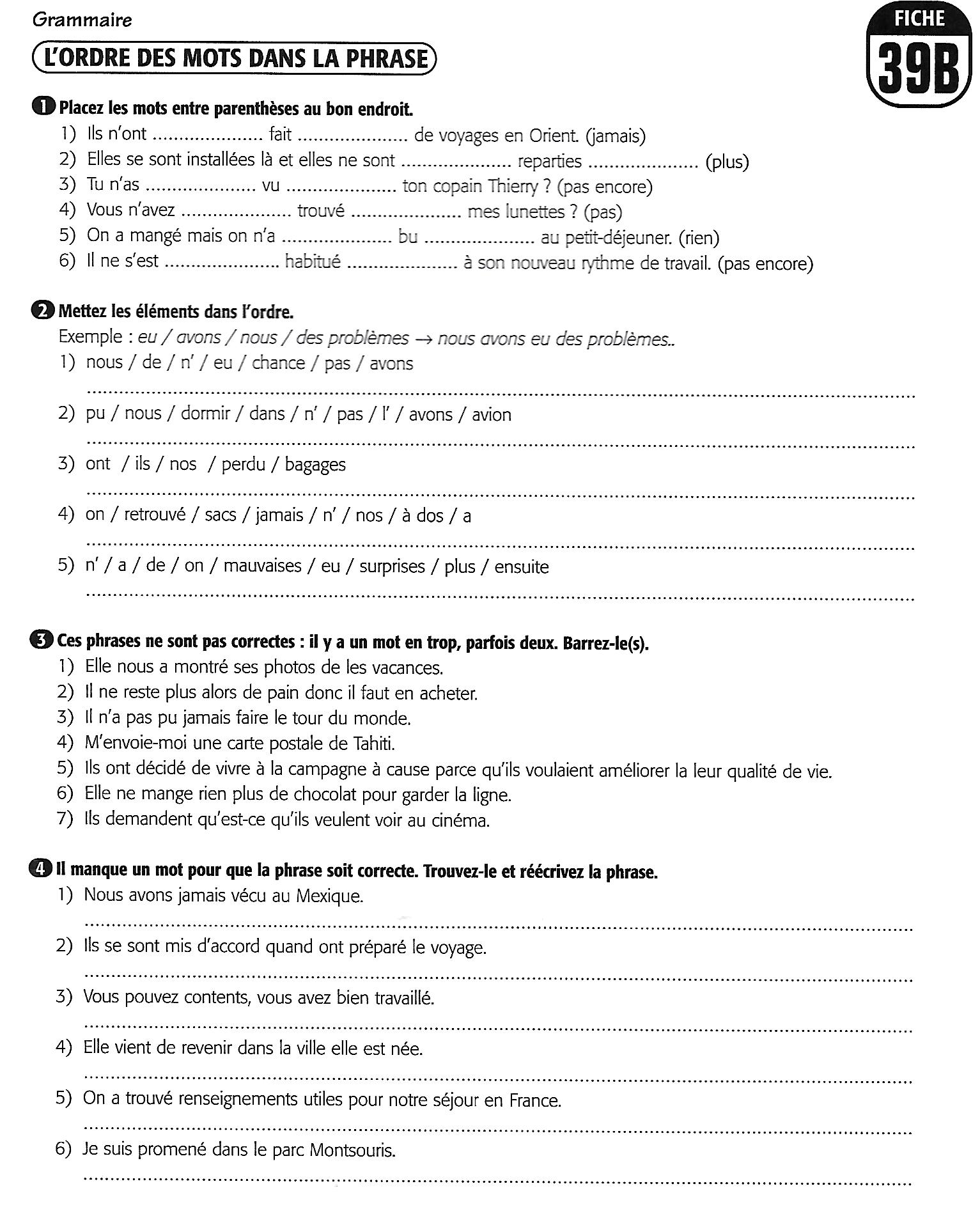 a)- Tenéis que hacer la ficha 1 adjunta para descargar, sobre el orden de las palabras en la frase, y para ello debéis consultar el cuadro de adverbios y su lugar en la frase, que os puse en las indicaciones de la semana pasada.( du premier au 5 juin )