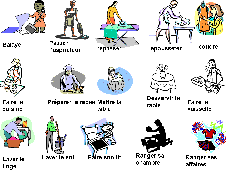 1.b)- Vidéo de youtube “Les tâches ménagères” ( + léxico en livre parachute page 43 et 45, cahier exos pages 39 et 41)