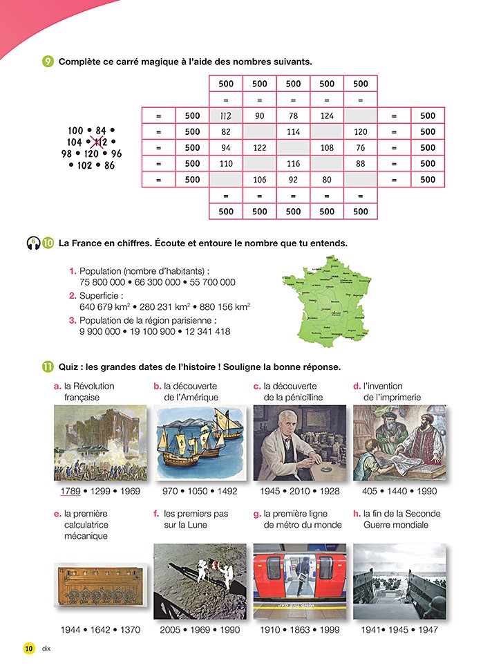 Page 10, exercice 10 ( piste 6 ) : "La France en chiffres" >>