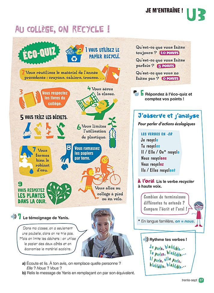 Au collège on récycle, page 37 livre élève