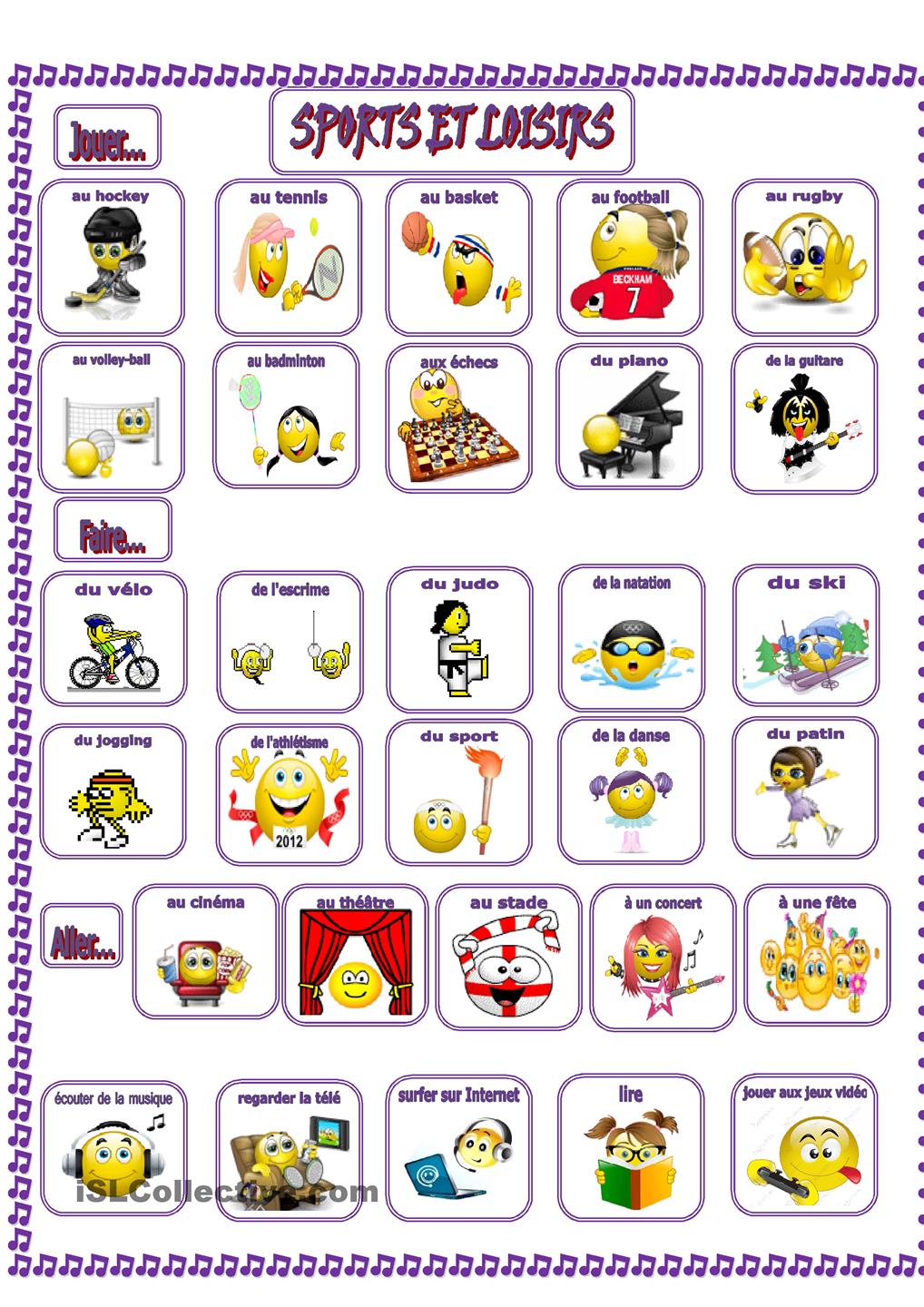 Les passe-temps et les loisirs. Cahier exercices page 11.