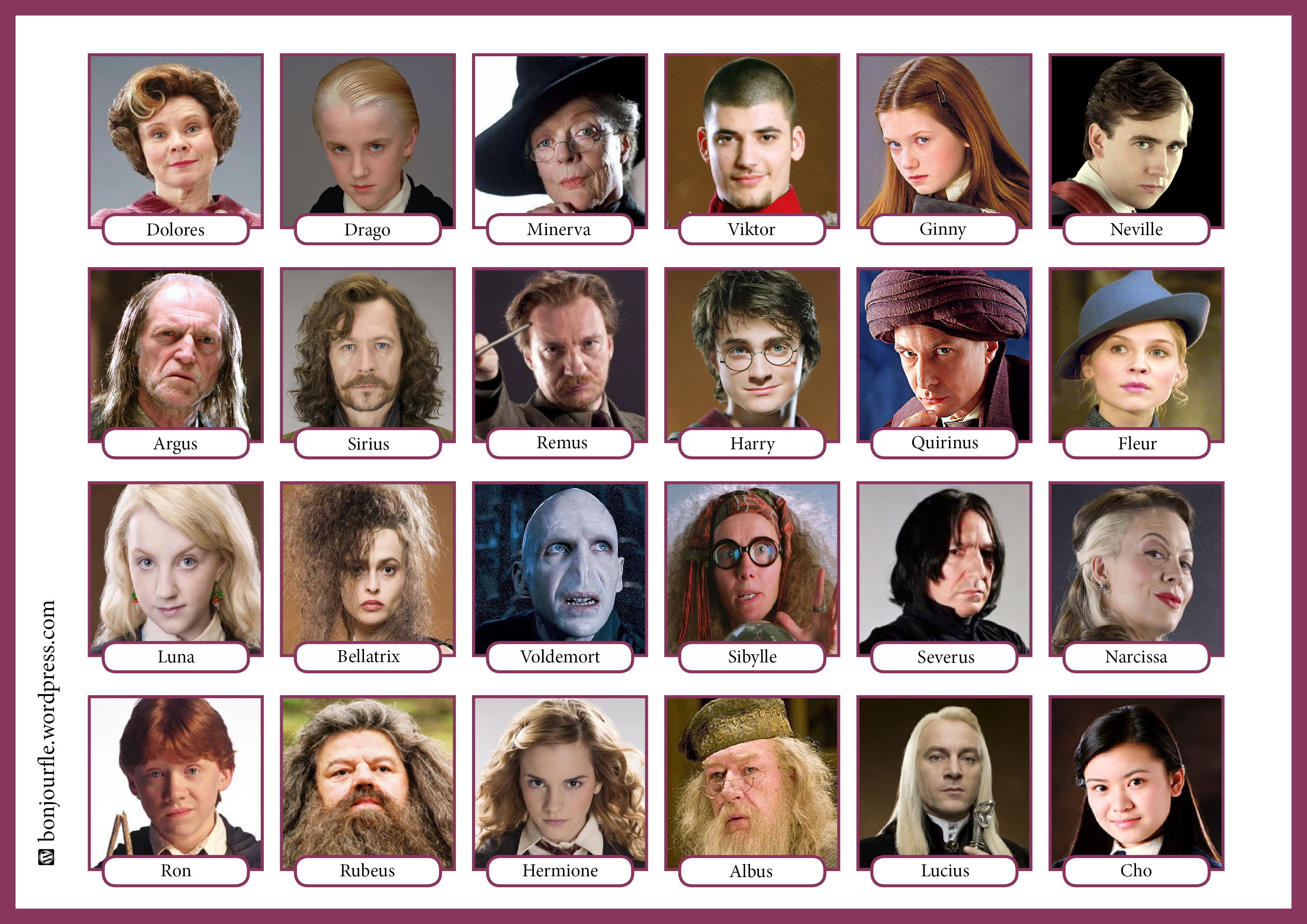 Aquí os dejo un documento con las fotos de los personajes de Harry Potter, para que los describáis.