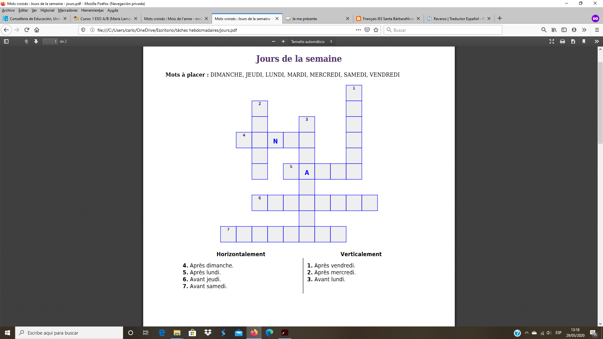 Les jours de la semaine.