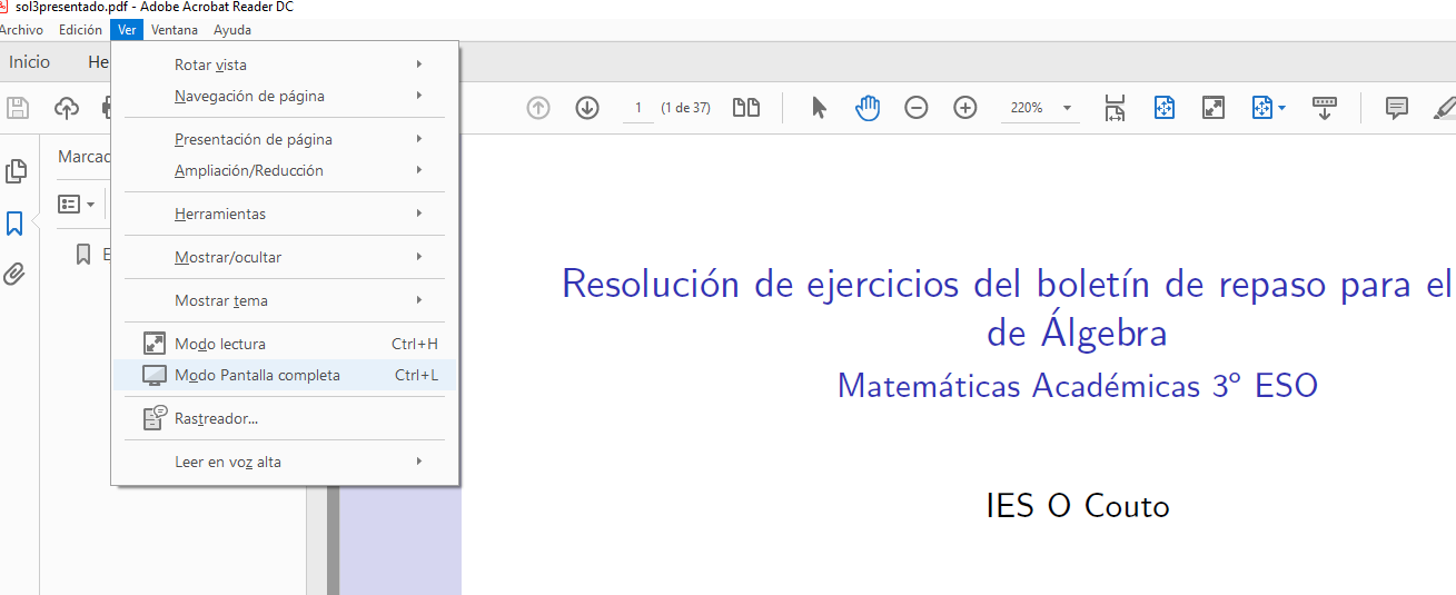 Si abrís la presentación en diapositivas, para que funcione bien tenéis que ir a Ver -> Modo pantalla completa. Después, para avanzar podéis usar la rueda del ratón, la tecla intro, la barra espaciadora, o las flechitas que hay abajo en cada diapositiva