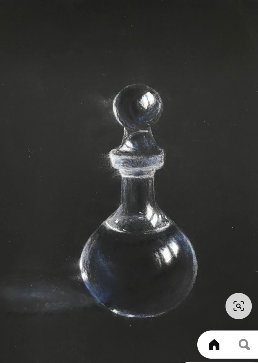 creta blanca sobre fondo negro. Frasco de cristal