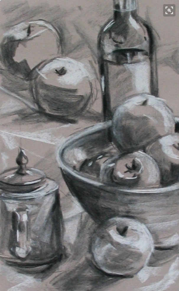 BODEGÓN CON CARBONCILLO Y CRETA BLANCA