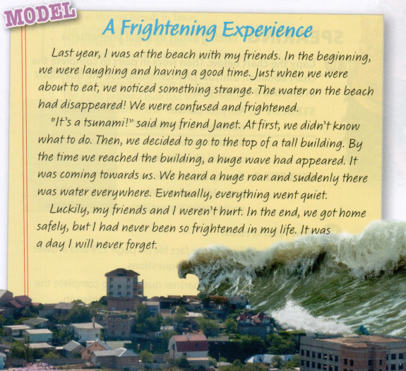 Write a narrative story about a frightening thing that happened to you. It must be written in the first person. Use the narrative tenses, appropriate vocabulary and connectors of sequence.