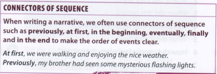 - Use the structure of a narrative as in the picture below and the connectors of sequence: