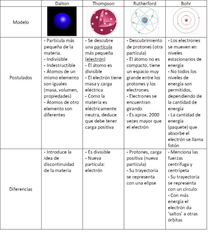 Esquema de los modelos atómicos