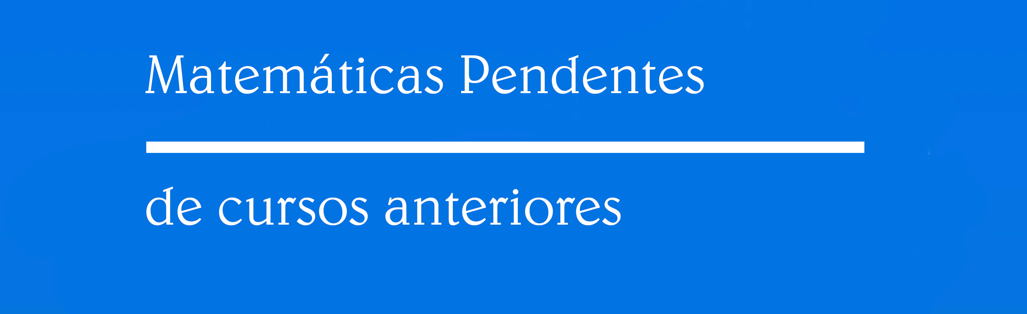 Neste curso estará matriculado todo o alumnado que teña a materia de matemáticas pendente de cursos anteriores. No curso estarán todas as actividades que se terán que realizar así como toda a información necesaria para o seguimento e avaliación da materia.