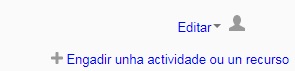 Situámonos ao final do tema no que queremos engadir o recurso. Seleccionamos o tipo de recurso que queremos engadir na lista despregable "Engadir un recurso..".