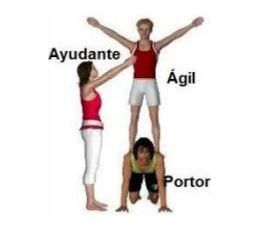 Aquí podedes ver as diferentes posicións dos diferentes roles nunha figura de 3 persoas.
