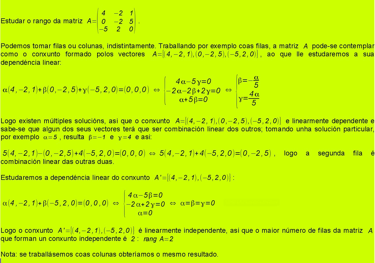 Dado un subconxunto W dun espazo vectorial, chama-se rango de W, e expresa-se da forma rang W ao maior número de elementos de W que forman un subconxunto linearmente independente.