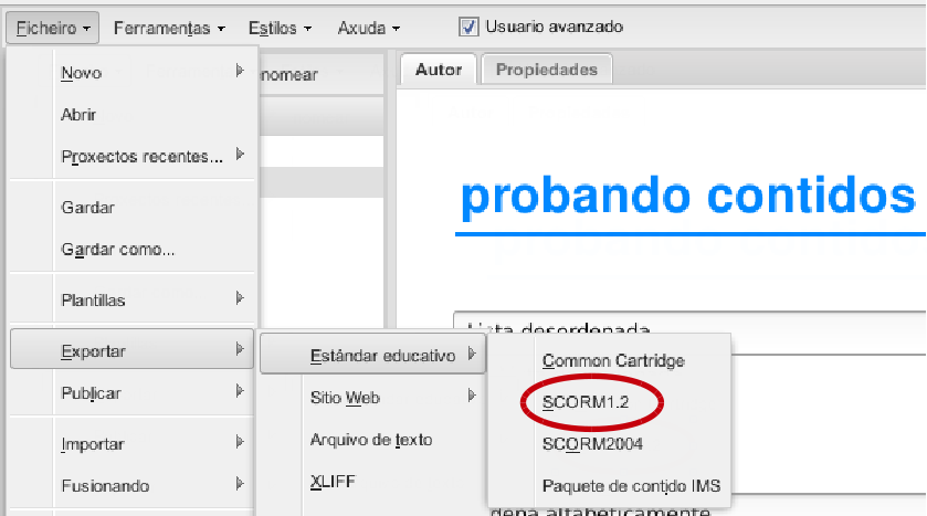 SCORM 1.2 : Exportación e publicación na Aula Virtual
