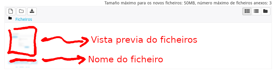 No bloque de entregar ficheiros vemos como nos aparece o límite máximo de número de ficheiros e de tamaño dos mesmos. Se queremos engadir un novo ficheiro temos que premer na flecha cara abaixo situada no medio do cadro ou no icono con forma de documento.